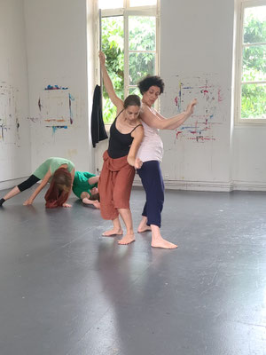 Les ateliers et les stages sont empreints de mes pratiques personnelles, la danse biodynamique, la danse contact improvisation, les pratiques somatiques . Elles sont complémentaires et se nourrissent l'une de l'autre.